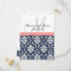 Custom RSVP Navy Damask Wedding Postcard Layout Design by Elke Clarke©. Graphics licensed. Customisable RSVP Damask Wedding Postcard fits with 5 x 7 invitations.