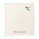 Pretty ecru notepad featuring a ruby-throated hummingbird. The font style, font size and colour can be changed by clicking on "customise further." Bird image taken from original watercolor paintings by Christiane Dobbins.