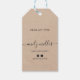 Custom Rustic Elegant Calligraphy Script Hang Tag. Personalise this design template to create unique product label tag for your products and business. Features a faux kraft paper texture image background for a rustic style.