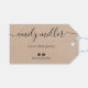 Custom Rustic Elegant Calligraphy Script Hang Tag. Personalise this design template to create unique retail tags for your products and business. Features a faux kraft paper texture image background for a rustic style.