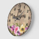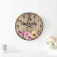 Custom Rustic Wood Pink Purple Yellow Roses Large Clock