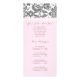 Custom salon menu rack cards in elegant and feminine light baby pink, dark charcoal grey and white classic floral damask pattern. Personalise these price list cards with all your salon or spa services to provide your customers with a quick and easy way to know all their options. Contact us for a custom colour or for matching small business products.