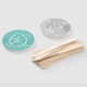 Custom sand dollar shell beach wedding party photo hand fans. Custom teal blue design with vintage seashell and typography template. Add your own text.