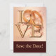 Love wedding rings design. Chocolate Brown and Gold. Save the Date Photo Cards, Personalise with your engagement photo. Easy to make, Custom Wedding Cards and save the date cards. Add a touch of elegance with this gold and brown wedding set. Features a gold and brown colour scheme, with a pair of golden wedding bands to make the "o" in LOVE. Customise with your details. Pretty and meaningful bridal design.
