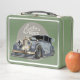 This is a standard metal lunchbox that appears to work just fine. We designed this box ourselves with an uploaded photo and custom text on the front and back. It looks absolutely beautiful except the front of the lunchbox is not centered like it shows in the photo. The print borders don't align with the inset flat part of the box where the preview photo online showed it perfectly centered in there. The back looks nice and centered though.