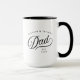 Modern Custom Script Dad Mug Father's Day Black Text . Featuring "Dad" in a vintage retro scripted font and ready for you to customise with names and year (or any text you want) that he became Dad. Ideal for everyday sipping and slow weekend mornings. Text, colours and fonts can be changed when you tap on "Personalise this template". ©Marisu Valencia