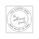 Create your own family name stamps with simple typography and an elegant round logo. This return address stamp features circle text script. Perfect for country and rustic weddings or any family's mail! Change the family name to a couple's names for a wedding stamp! Click on "Personalise this template" to change the wording. If you want to change fonts, sizes, or placement, scroll down to "Click to customise further" and use our design tool! Visit our store for more designs!