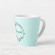 Delicate elegant blue green wildflower wreath with custom scripted name with a pastel pink blush background. A delicate lovely latte mug style. A series of these mugs are a great housewarming gift to display on open shelves to complement kitchen decor.