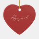 Script Name Simple Heart Ornament. Year on the back. Red and White.