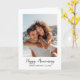 Personalise this modern and trendy anniversary card by adding a photo of the couple. The front features the phrase "Happy Anniversary" in an elegant script font, along with the couple's names and their wedding date. Inside, you will have the option to edit the message. Simply click the 'Edit/Personalise' button to customise the design.