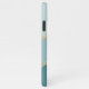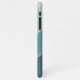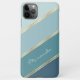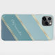 Contemporary girly teal blue and ocean seafoam green coloured striped cell phone case. With room to customise with a name, monogram, or initials of your choice. Beautiful, modern, and cool cover for the trend-savvy and art-loving hip trendsetter, artsy motif lover who wants to protect their phone from dust and dirt, wear and tear. This design is available for Apple iPhone 6, 7, and 8 Plus, 10 or X, XR, XS, 11, 12, 13 Mini, and 14 Pro Max cellphone cases. Show off your style, look fashionable, and feel stylish with a unique design on a mobile device accessory of your choice.