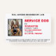 Service Dog - Easily identify your dog as a working service dog, while keeping your dog focused and cut down on distractions while working with one of these k9 service dog id badges. Although not required, a Service Dog ID badge gives you and your service dog peace of mind and ease of travel without hassles and questions when seeking public access. Our Service Dog Id Badges are TSA compliant and have the United States Federal Laws on the back with ADA website and contact phone number. Customise with your Service Dog’s photo, name, handler’s name and city and state.