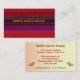 This business card advertises a custom sewing business which specialises in weddings, fashion, dress making, alterations, repair and home decor. This fine art design features an image of a colourful abstract pattern of woven horizontal bands. The brilliant colours of red, purple, blue and black seem to glow. The reverse side has all the pertinent text which can be customised to suit your needs.