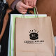 This custom stamp features a sewing utensil with monogram, a name and slogan.