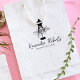 This custom stamp features a sewing mannequin with flowers, a name and slogan.