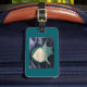 Realistic painting of a shark swimming in water, with its mouth open, is printed on custom luggage tags. There is a template form for the address on the reverse side, with the text in a light aqua green on the same darker green that is printed on the front. Thank you for shopping at CherylsArt on Zazzle.