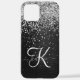Custom Silver Glitter Black Sparkle Monogram iPhone Case