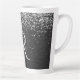Easily personalise this trendy elegant latte mug design featuring pretty silver sparkling glitter on a black brushed metallic background.