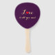 Create your own custom, personalised, beautiful purple, simple, elegant faux gold typography / script, monogram red heart, bride & groom, wedding hand fans with wood handles. Simple assembly is required (wood handles and 4 glue dots per fan included); you may also purchase pre-assembled for an upcharge. Features the quote "Love is all you need" on the other side. To customise, simply type in the name of bride & groom, the wedding date, and bride & groom's initials.