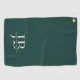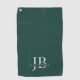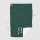 A sporty look in green with ivory beige lettering, this simple modern golf towel makes a wonderful gift or treat for yourself. It has large monogram initials to personalise with your desired initials and also the name spelled out in elegant classic serif type face.