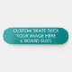 CUSTOM SKATE DECK 8 1/2" Skateboard - TEAL Background (personalise or delete). Design Your Own skateboard deck. Fully personalised skateboards.