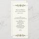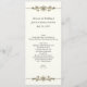 Long and skinny wedding table menu done in cream with elegant graphics of gold tone jewel bands, on the top and bottom of the menu. Personalise all the text to suit your wedding reception menu.