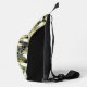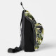 This custom sling bag is shown in a black and olive green multi colour animal art print with black colour accents, buy as shown or add to it.