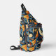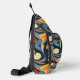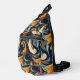 This custom sling bag is shown in a multi colour abstract art print, buy as shown or add to it.
