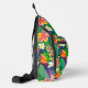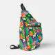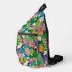 This custom sling bag is shown in a colourful tropical print, buy as shown or add to it.
