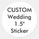 1.5" & 3" round & square; rectangle; triangle; star shaped stickers available.