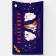 Celebrate the spooky season in style with this customisable Halloween party banner designed especially for small businesses! Featuring a cute ghost in a beanie, eerie purple skulls, floating spirits, bats, pumpkins, spiderwebs, and bold "Happy Halloween" text – this banner brings playful yet professional Halloween vibes to your office or store. Add your business name (like “GEORGE SAMUEL & CO”) for a personalised touch. Ideal for Halloween office parties, customer events, or promotional displays.