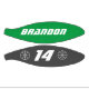 Novelty design with custom name, logo, age or jersey number and background colours.