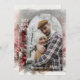 This holiday card is unique, classic, trendy, and decorative. It features a charming "With Love From" section, along with space for customisation or personalisation with a photo and the names (or family name) of your choice. The design showcases an elegant winter floral bouquet in a dark teal blue, white, and red colour scheme. Additionally, the back of the card includes a customisable seasonal greeting poem.