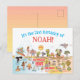 Bright and charming 1st Birthday postcard offers a spectacular view of Southern California - wild characters enjoy the warm California sun showcasing Los Angeles, Orange County, San Diego, Santa Barbara, Riverside, Palm Springs, El Centro, Anza Borrego and Joshua Tree parks as well as the border cities of Tijuana, Tecate and Mexicali.