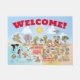 Bright and colourful scene offers a spectacular view of Southern California - wacky characters frolic on the beach and desert of SoCal showcasing Los Angeles, San Diego, Orange County, Santa Barbara, Riverside, Palm Springs, El Centro, Anza Borrego and Joshua Tree parks as well as the border cities of Tijuana, Tecate and Mexicali. This charming scene has it all – a surfer hangs ten while a killer whale leaps out of the water, zoo animals greet the tourists, a muscular dude flexes his pecs as a T-Rex roars a challenge and a tank moves into position and much more…