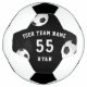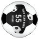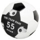 Custom Soccer Ball with Team Name Number. The design is in black and white with three soccer balls in the corners. Personalise the soccer ball with the team name, team number and player`s name. The text is in trendy white colour on a black background. Great for a soccer player, soccer lover, as a gift or a keepsake ball.