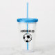 Custom name acrylic tumbler glass with soccer ball logo. Personalised drinkware for home, club, Birthday, tailgate party, wedding party, bachelorette, bridal shower, BBQ, travel, Holiday, gathering, reunion, business event, office and more. Elegant script typography template. Fun transparent plastic cups for friends and family. Add your own monogram letters, name or funny quote. Includes lid and straw. Available in different colours. Cool design for kids and adults. Great for drinking healthy smoothies and other cold drinks. Useful sporty gift ideas for him and her. Unique presents for soccer player, fan, coach, trainer, instructor, teacher, friend, doubles partner, team mate, league, mum, dad, husband, wife, son, daughter, co worker, boss etc.