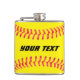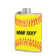 Custom Softball Flask: Makes a great gift for softball player, fans or coaches. Add your own text in the text box, or leave it Flask for a simple softball design. Features high quality red stitches and the standard yellow softball colour.