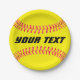Custom Softball Paper Plates: Perfect for softball banquets and parties, or for serving snacks at the game. You can add your own text in the text box to personalise it, or delete the text and leave it blank just the softball.