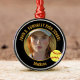 Custom Softball Player Photo Christmas Black Gold Metal Tree Decoration