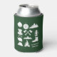 Easily add the name of your favourite campground and the state it's in to create your own souvenir camping can sleeve or add a family name or other text to create your custom family reunion or group camping trip can wrap featuring a collage of camping scenes and outdoor equipment in white set against a hunter green background. Makes a cool gift for campers and anyone who loves the great outdoors. There are illustrations of mountains, a tent, a campfire, a lantern, hiking boots and more.