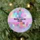 Custom Sparkly Pink & Rainbow Disco Ball Christmas Ceramic Tree Decoration