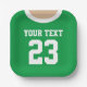 Custom sports jersey number kid's Birthday party Paper Plates. Personalise with custom name and number. Great for fans for soccer, hockey, basketball, lacross, volleyball, football, baseball, rugby and other team sports.