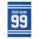 Custom sports jersey number mini clipboard gift. Personalised Holiday or Birthday gift for sports coach, personal trainer, fitness instructor, friend, mum, dad, boss, coworker, employee, school teacher, office worker, kids etc. Sporty design with name and stripes. Blue and white or custom colours. Double sided print. Handy for making notes, keeping score and more. Use in football, baseball, basketball, soccer, tennis, golf, volleyball, hockey, fitness and other team sports.
