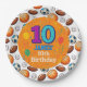 Serve up birthday treats in style with these sporty custom paper plates! Featuring basketballs, footballs, soccer balls, and baseballs with a bold number “10” and your child’s name, these plates are perfect for an energetic boy’s birthday bash. Durable, fun, and totally festive!