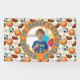 Welcome guests to an energetic and fun celebration with this custom kids’ birthday welcome sign featuring a playful pattern of sports balls and a bold orange frame. The design includes a personalized photo, child’s name, age, and birthday message, making it a special and memorable part of the party décor.