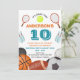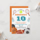 Celebrate your little athlete’s special day with this fun and colourful sports-themed birthday invitation! Featuring tennis rackets, basketball, soccer ball, baseball, and more, this playful "Game Time" design is perfect for any sports-loving kid. Customise with your child’s name, age, party details, and RSVP information. A great choice for boys or girls who love sports and want an energetic, fun birthday celebration.