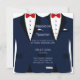 Custom square blue and white gay wedding invitations, when the grooms are hosting, with changeable text