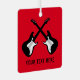 Custom square metal guitar Christmas tree ornament. Cool design with two electric rock guitars and personalised text. Upload your photo on the back optionally. Fun Holiday gift idea for guitarist, guitar player, musician, music teacher, friends, family, rock star, coworkers, band etc.