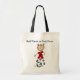 A female stick figure soccer player wearing a red uniform on a tote bag you can customise with a name or other text before ordering.
